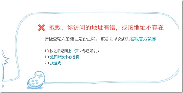 如果我们访问一下不存在的游戏应用,例如game.weibo.com/ilovecoffee222,则会输出如下的错误提示: