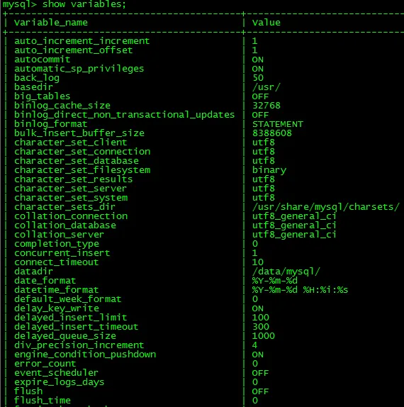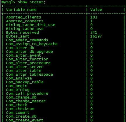 同样的语句还有SHOW VARIABLES;SHOW STATUS是查看MySQL运行情况,和通过pma查看到的信息基本类似