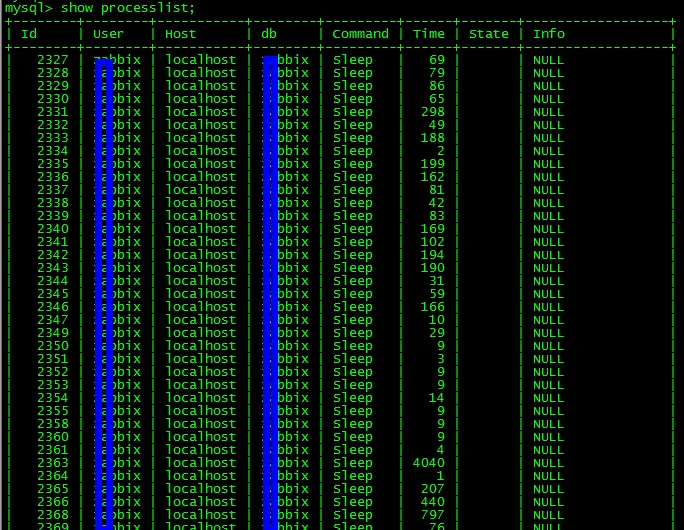 SHOW PROCESSLIST是查看当前正在进行的进程,对于有锁表等情况的排查很有用处。一般情况下,打开MySQL的慢查询记录同样有利于排查。