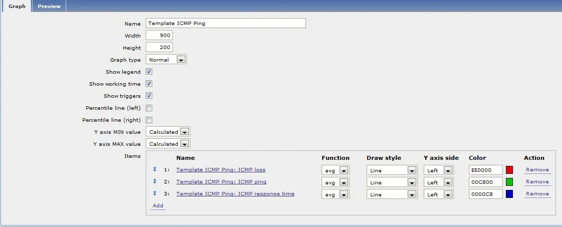 使用zabbix监控服务器系统是否正常存活,当前网络的连接情况,延时以及丢包率,可以使用监控模板中的icmpping,icmppingsec,icmppingloss