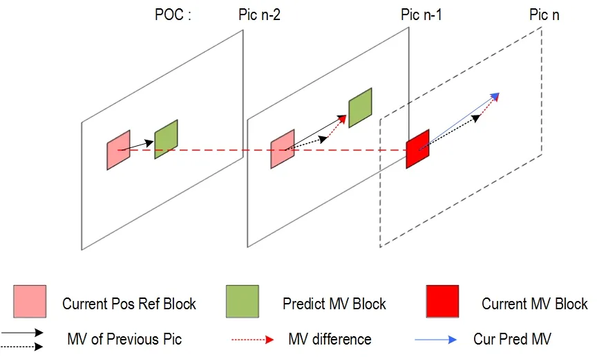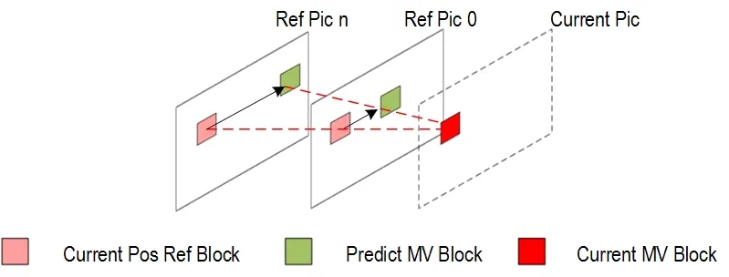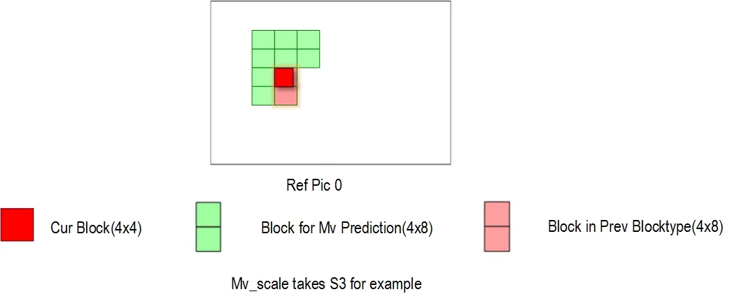 7.S7S7,Memory Prediction即采用同一块位置中,上一个块类型(Block type - 1)做预测得到的mv,采用其相邻mv,做mv_scale