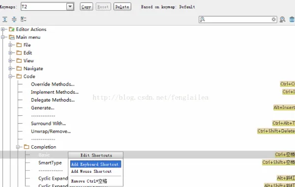 默认代码提示和补全快捷键跟输入法冲突,如何解决:Settings->Keymap