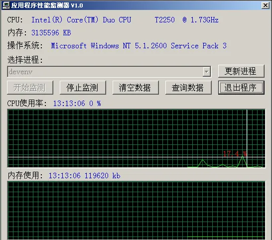 在网上找了老半天也没有找到适合的性能的软件监测工具,干脆就自己写了一个小软件 。给大家分享一下。下载地址大家去百度一下。