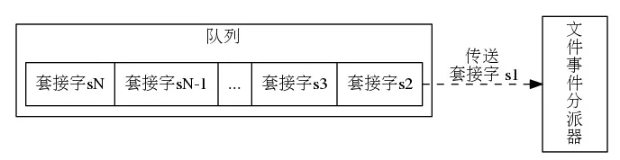 (3) I/O 多路复用程序通过队列向文件事件分派器传送套接字的过程