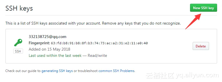 打开github设置key 将上面复制的内容粘贴在New SSHKey->key中