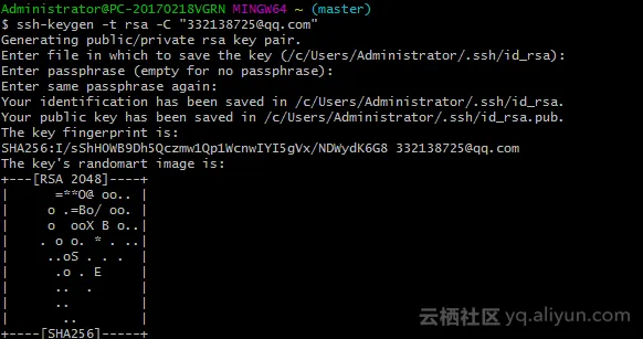 $ ssh-keygen -t rsa -C "332138725@qq.com"