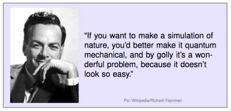 Feynman 在1982 年的建议: 既然传统计算机需要用指数级别的资源来模拟量子力学, 也许一台基于量子力学的计算机能够更为有效的完成任务. David