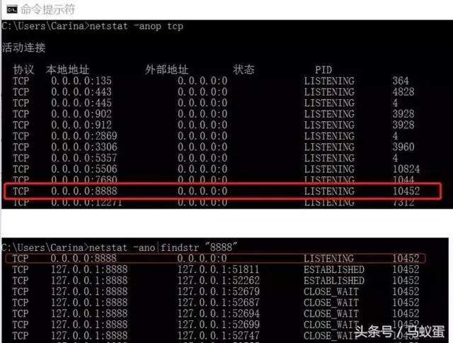 接下来在CMD命令窗口,查看Fiddler进程是否能正常监听8888端口,如果服务没有正常开启,可以尝试使用其他端口,端口修改的位置,如上图位置。