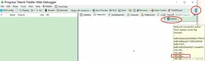 2、完成Fiddler的配置(允许远程连接),端口默认8888,然后重启Fiddler使其生效