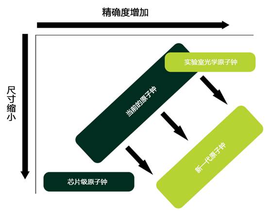 现在,原子钟的性能已经达到了前所未有的水平。最好的原子钟精度可以达到每100年误差只有几纳秒,并且突出小型化、便携性,成本也大大降低。这些发展开拓了全新的潜在应用和市场。此外,新一代原子钟还可以有效降低卫星定时信号中断带来的不便。
