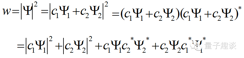表示电子穿过两个窄缝到达屏的状态: Ψ= C1Ψ1 + C2Ψ2 。