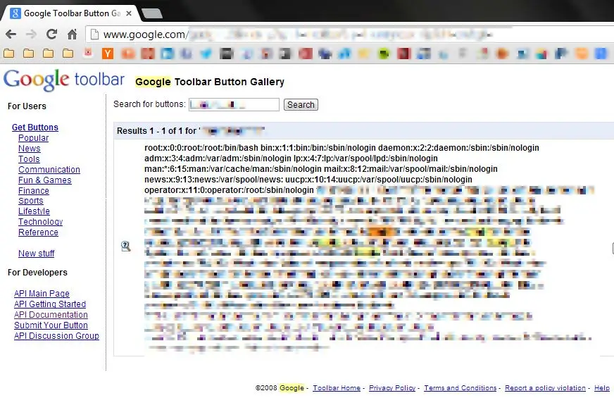 了解 XML 以及外部实体之后,这个漏洞实际上就非常直接了。Google 的工具栏按钮允许开发者定义它们自己的按钮,通过上传包含特定元数据的 XML 文件。