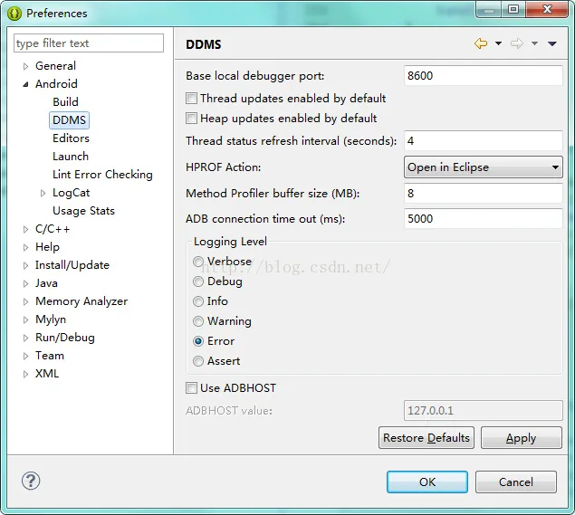 7、在Eclipse的Preferences中修改USB与电脑的连接端口