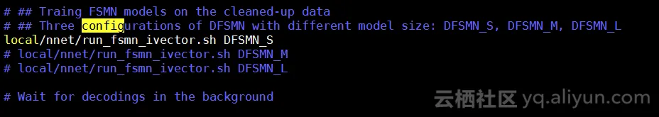 脚本的前面都是官方提供的前端数据处理,GMM-HMM训练等流程。关于DFSMN的训练在跑完这些官方流程以后可以通过如下的命令进行: