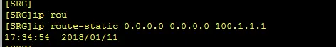 5、部署默认路由到外网(ip route-static 0.0.0.0 0.0.0.0 100.1.1.1;)