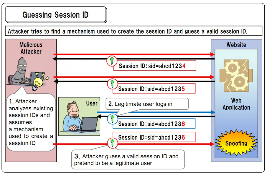 首先是猜测的方式,如果我们的sessionid的生成是有规律的,那么使用猜测的方式就可以到达非法获取的目的,如图所示: