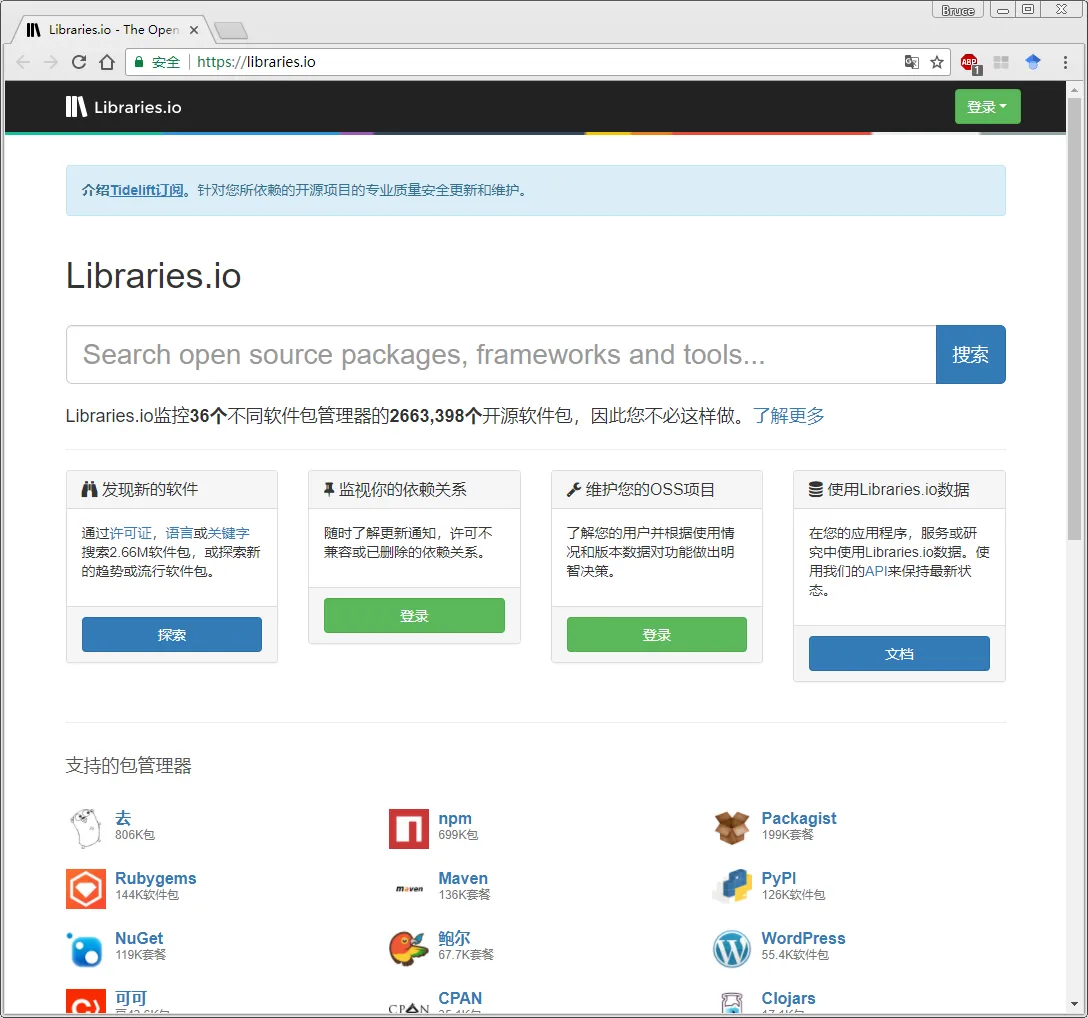 法二:寻找开源的包、框架和工具...的网站:https://libraries.io/