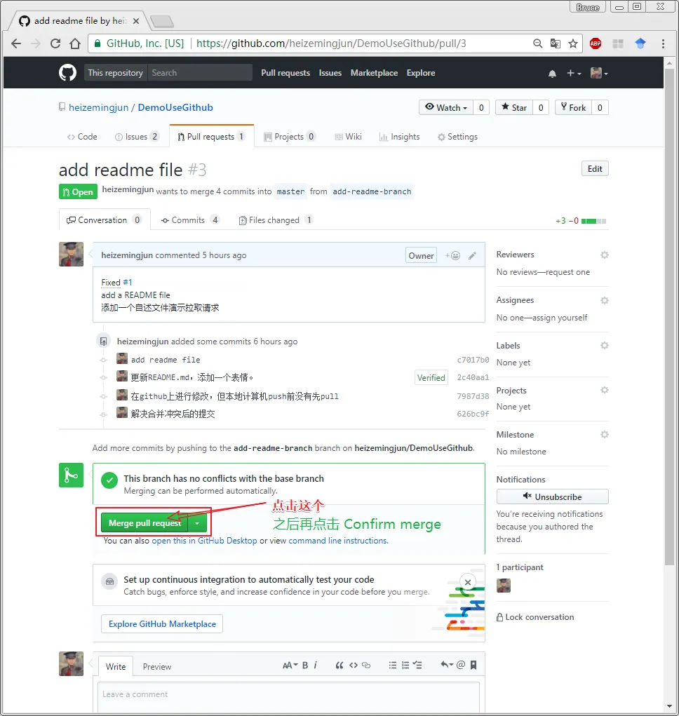 假设在合并Pull Request到我们的主分支之前,想对要合并的新分支添加修改,该如何做呢?