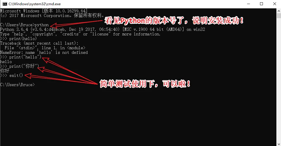 8、装完之后打开电脑的cmd,验证一下安装是否成功,主要是看环境变量有没有设置好,在cmd中输入python,然后回车,如果出现Python的版本号则说明软件装好了。