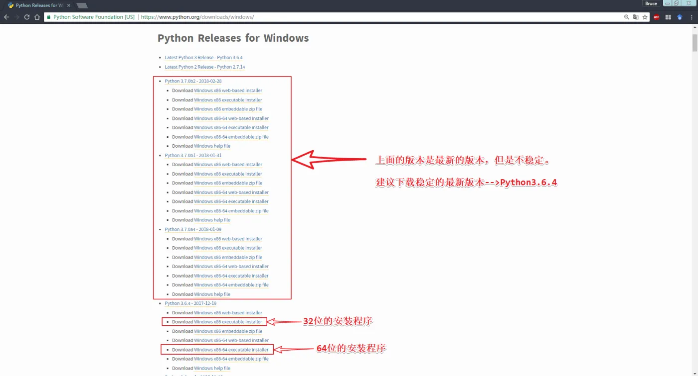 2、下载exe后缀的可执行文件,根据自己系统选择32位还是64位。