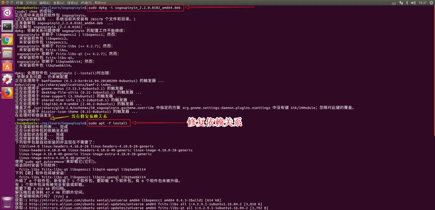 安装搜狗输入法的操作如下如所示: