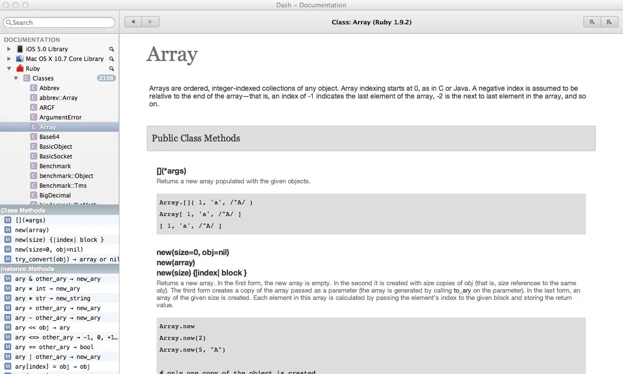 官方用一句话就概括了它的用途:Dash是一个API文档浏览器( API Documentation Browser),以及代码片段管理工具(Code Snippet Manager)。你没看错,它就只有这两个功能,但确实是程序员(至少对于我来说)最为关心的特性,自己之前也用过了不少类似的工具,可以毫不夸张地说,Dash是它们之中做的最好的一个!