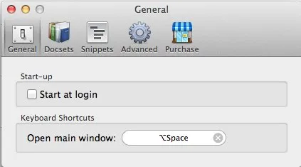 上图便是Dash的API浏览器主界面:左侧边栏是各种编程语言以及框架(取决于你下载安装了多少文档集合)的导航大纲,点击某个节点,右边的内容区域就是文档的详细信息啦,非常直观。也可以在左上方的搜索框内通过输入关键字,查找相关的API文档,非常类似全文检索的实现方式,Dash的响应速度非常快!关键是可以同时查询不同的语言、框架内容,实在是太方便了。看到这里你也许要问了,这跟我们平常切换到特定的文档窗口(比如一个PDF或者一个CHM文件),再ctrl + f查找有什么区别,不是多此一举吗?其实你错了,Dash可以通过快捷键来显示、隐藏文档窗口,它提供了配置界面以便用户自行设置(我比较习惯alt+space,因为其他软件很少用到这个组合键):