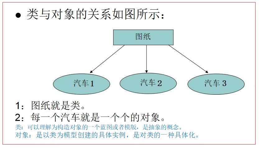类:可以理解为构造对象的一个蓝图或者模版,是抽象的概念。