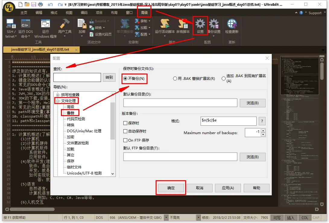 使用UltraEdit(UE)打开文件,修改保存后,会产生.bak备份文件,感觉很不爽,如何去掉呢?