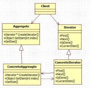 Iterator模式(迭代模式):提供一种方法访问一个容器(container)对象中各个元素,而又不需暴露该对象的内部细节。具体应用容器类(Vector、Set等)。