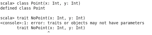 特质就像是带有具体方法的Java接口,不过其实它能做的更多。特质可以,比方说,声明字段和维持状态值。实际上,你可以用特质定义做任何用类定义做的事,并且语法也是一样的,除了两点。第一点,特质不能有任何“类”参数,也就是说,传递给类的主构造器的参数。