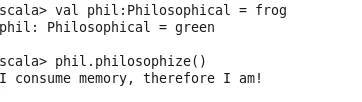 特质同样也是类型:phil的类型是Philosophical,一个特质。因此,变量phil可以被初始化为任何混入了Philosophical特质的类的对象。
