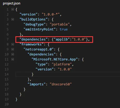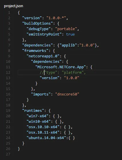 在 project.json 加入 runtimes 节点 注释掉 "type": "platform"。