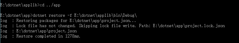 dotnet restore -f E:\dotnet\applib\bin\Debug\