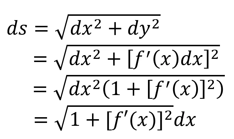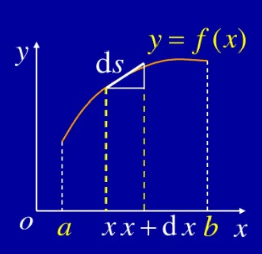 弧线长度是由无穷多个ds连接起来形成,这是一个积分问题。根据积分可知[a,b]的弧线长度为: