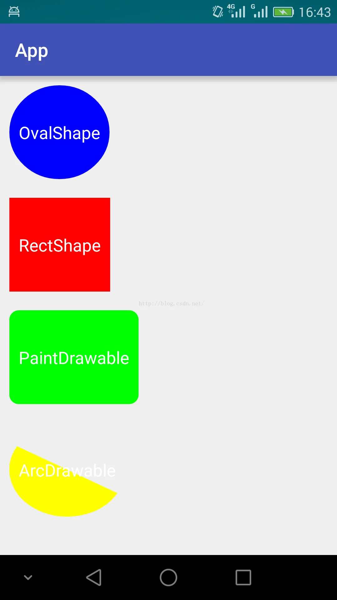 上层Java代码把OvalShape、RectShape、PaintDrawable、ArcShape分别作为背景Drawable: