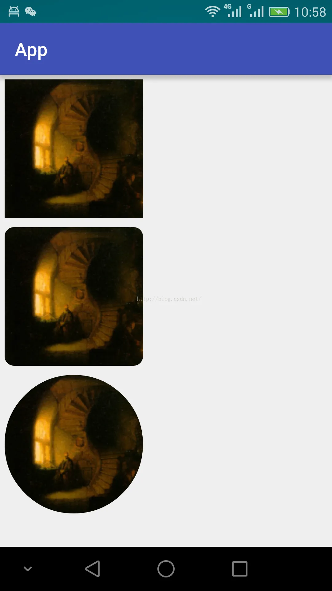 2,《Android CustomShapeImageView对图片进行各种样式裁剪:圆形、星形、心形、花瓣形等》链接地址:http://blog.csdn.net/zhangphil/article/details/50119921
