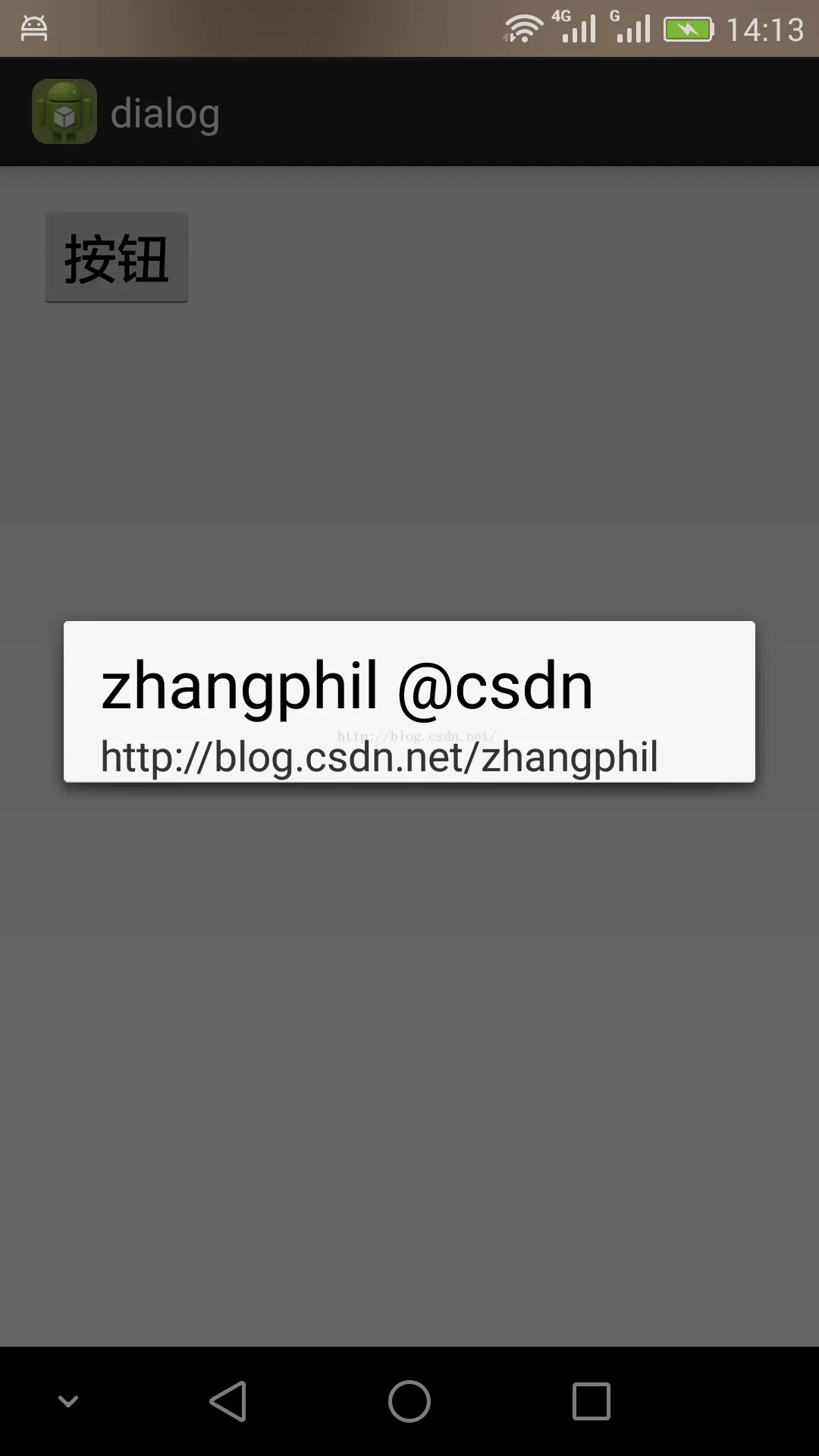 本例简单的以一个按钮启动弹出一个DialogFragment。当点击Button按钮后,弹出一个Android DialogFragment。