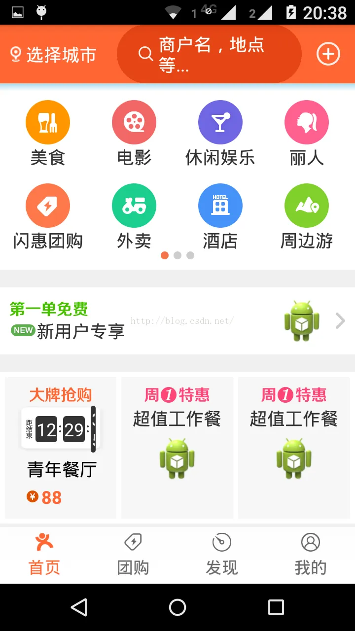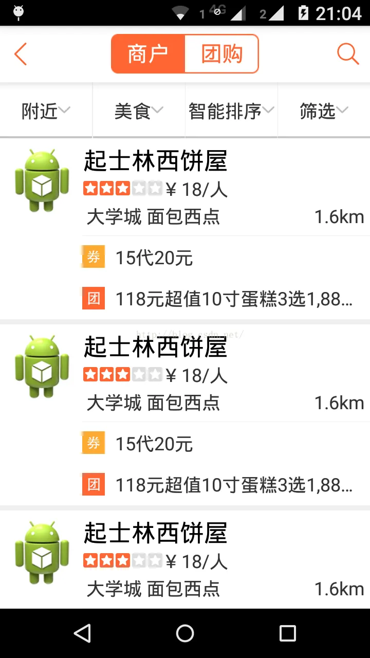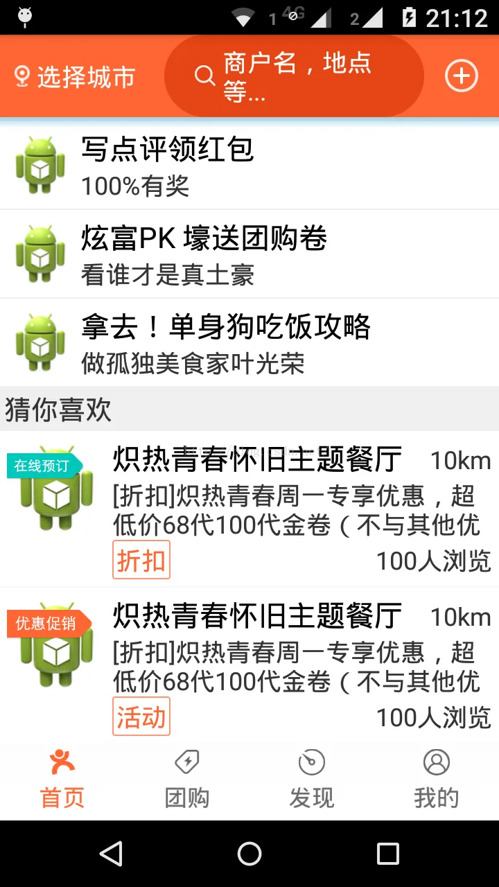 Android一个仿大众点评的开源项目,其在github上的项目主页:https://github.com/zhangphil/FangDaZhongDianPing