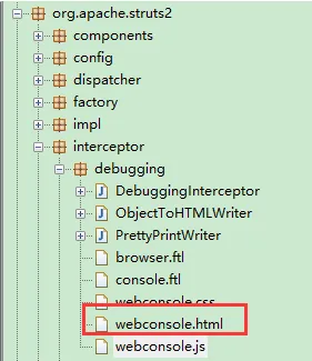 它的位置存在于: 我们手工删除 struts2-core-*.jar\org\apache\struts2\interceptor\debugging\ 文件夹下的browser.ftl、console.ftl、 webconsole.html、webconsole.js 即可 。删除完毕后,当我们再次访问,将会出现404页面。