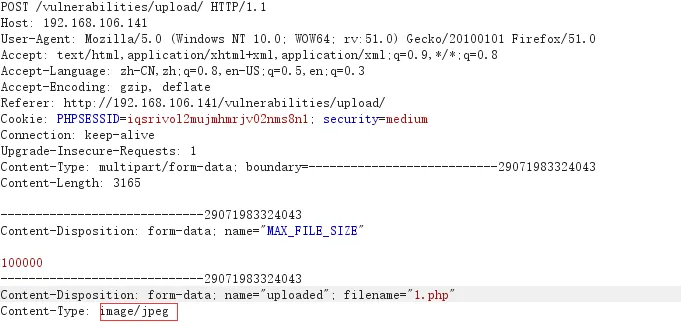 验证Content-Type,修改Content-Type为 image/jpeg直接绕过