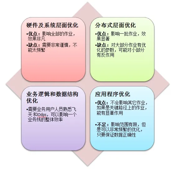 2. 分布式计算平台及存储层面调优:存储格式设置、压缩格式设置、RPC调用设置、连接数控制设置、调度机制设置、block及分片设置、执行资源设置等;