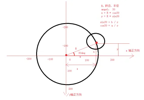 - x =x0 + Math.cos(rad) * R;//x0和y0是圆心点坐标