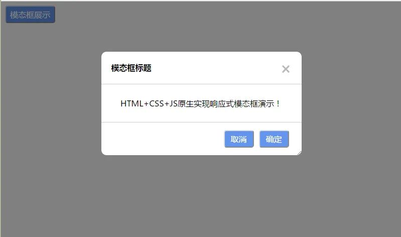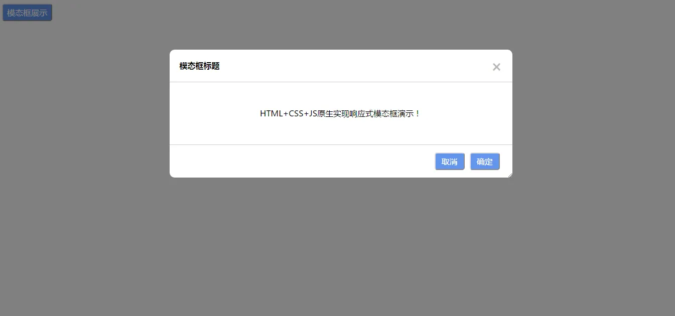 下面采用HTML+CSS+JavaScript实现模态框,并采用Flex布局和多媒体查询实现响应式。