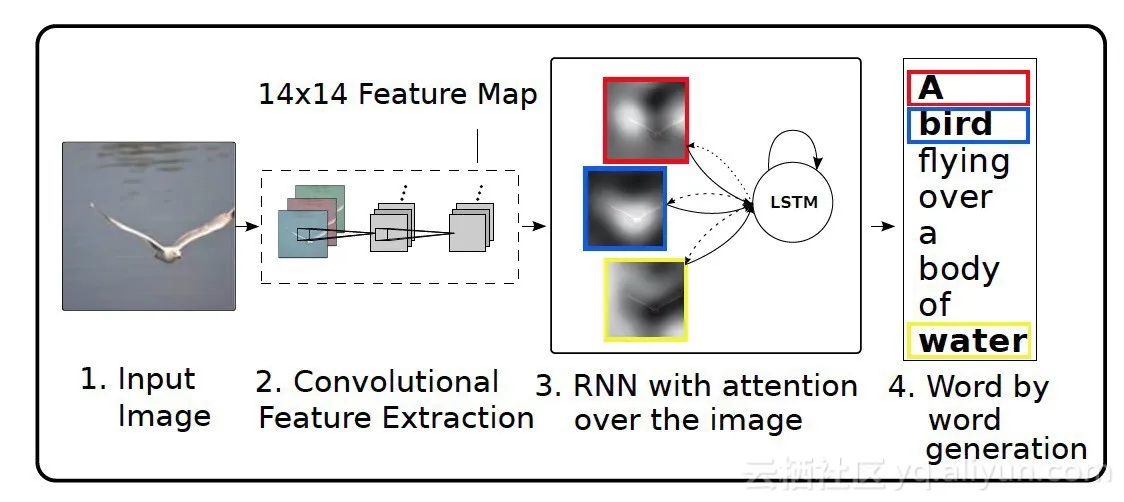 除了机器翻译之外,注意力模型还可以处理各种其他NLP任务。在Show,Attend和Tell:使用视觉注意生成神经图像标题,作者将注意力机制应用于生成图像描述的问题。他们使用卷积神经网络对图像进行编码,使用具有注意力机制的递归神经网络来生成描述。通过可视化注意力,他们可以在生成单词时解释模型正在查看的内容: