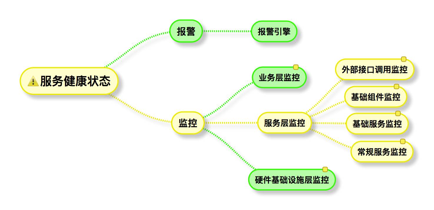 常规服务监控是指监控所有的⼀般服务的状态;外部接⼝调⽤监控是指分析系统依赖的外部的访问情况,包括访问量、错误信息、超时状况等,为快速定位问题提供依据。