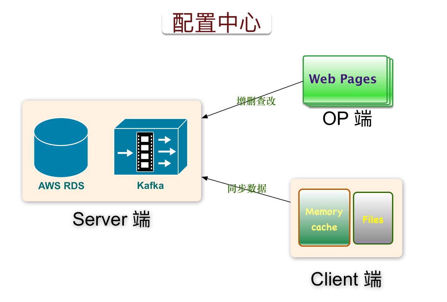 因为每个服务都会缓存依赖的配置数据,所以对配置中⼼的性能要求不是太⾼,我们⽤ AWSRDS 解决配置数据存储的⾼可⽤问题, AWS RDS 是⼀个托管关系数据库服务。
