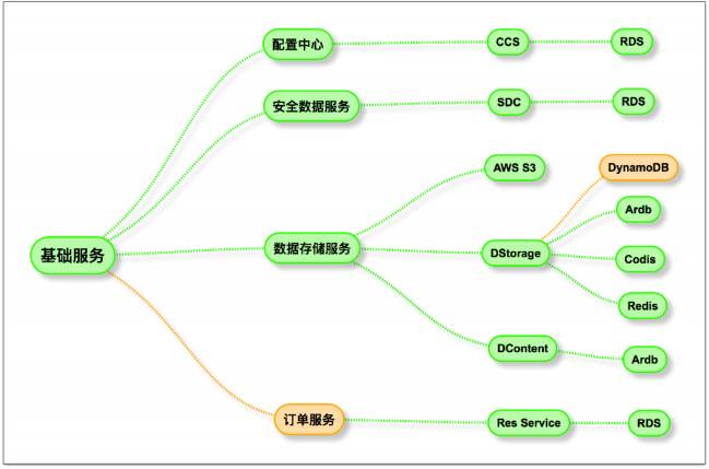 基础服务分四部分,分别是配置中心,安全数据服务,数据存储服务,订单服务。基础服务大多和存储有关,提供高性能高可用的服务。