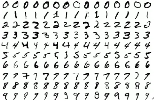 具体来看,MNIST手写数字数据集包含有60000张图片作为训练集数据,10000张图片作为测试集数据,且每一个训练元素都是28*28像素的手写数字图片,每一张图片代表的是从0到9中的每个数字。该数据集样例如下图所示: