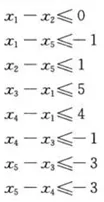 使目标函数值最大。在一个差分约束系统中,线性规划矩阵A的每一个行包括一个1和一个-1,其他所有项都是0,每个限制条件变为不等式xj-xi≤bk。